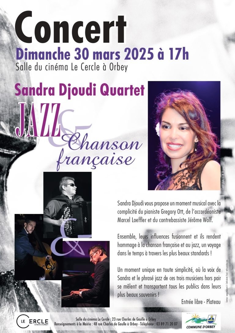 Concert Jazz et Chanson française Dimanche 30 mars à 17h cinéma Le Cercle