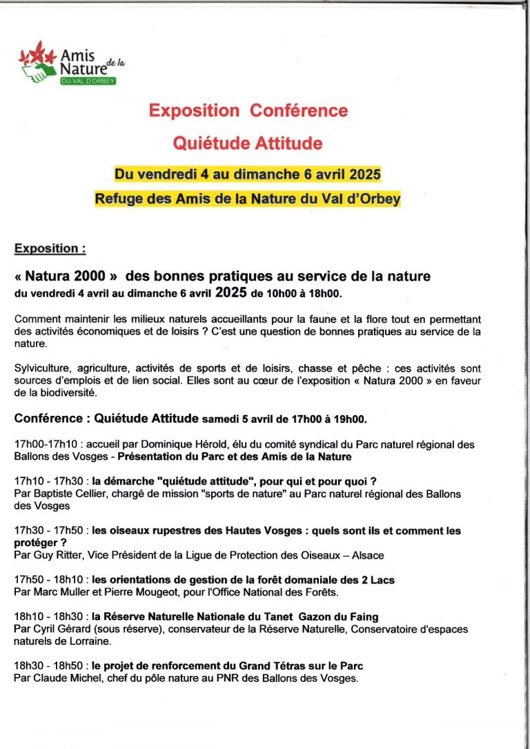 Quiétude Attitude exposition conférence du 04/04 au 06/04 Refuge des Amis de la Nature