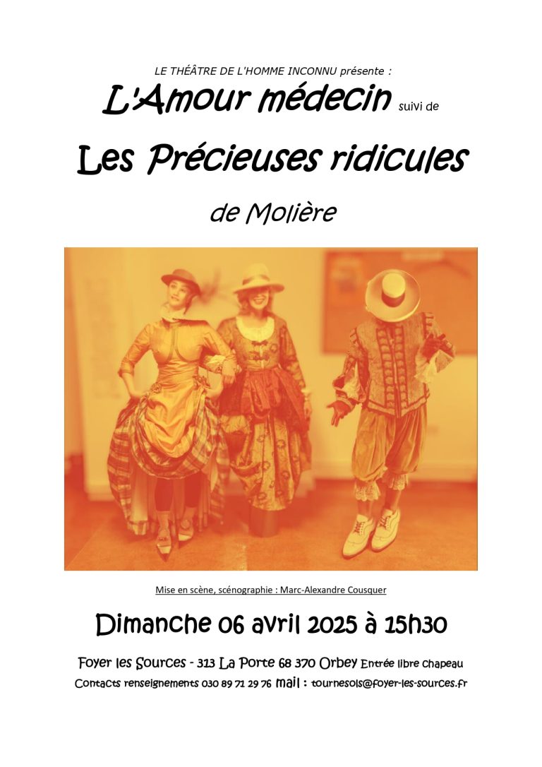 Théâtre L’Amour médecin et les Précieuses ridicules de Molière le 06/04 à 15h30 foyer Les sources