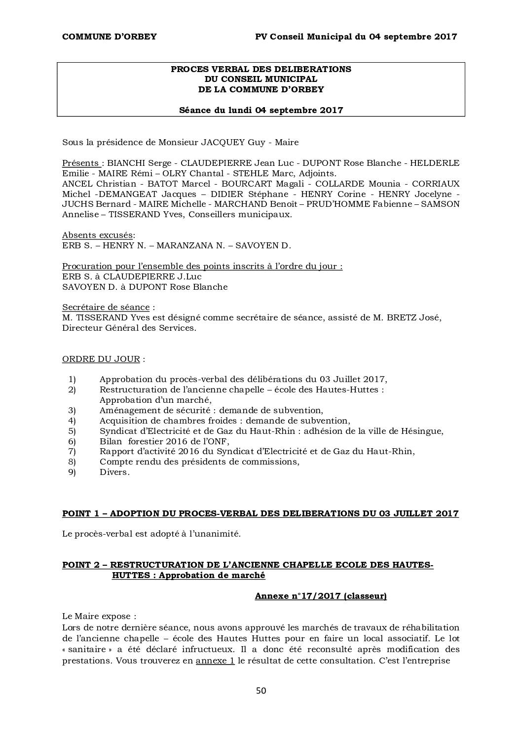 PV du Conseil Municipal du 04 septembre 2017