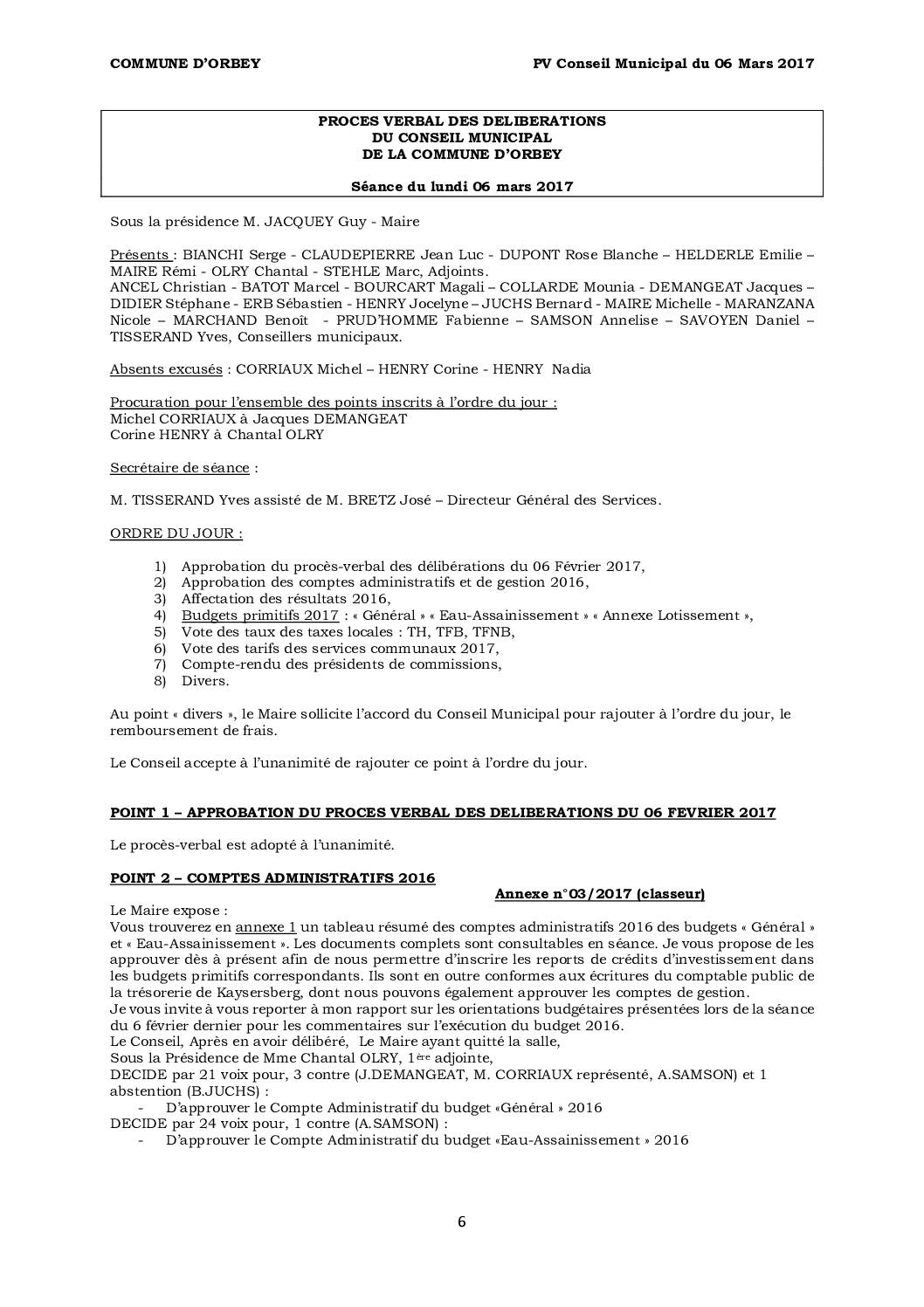 PV du Conseil Municipal du 06 Mars 2017