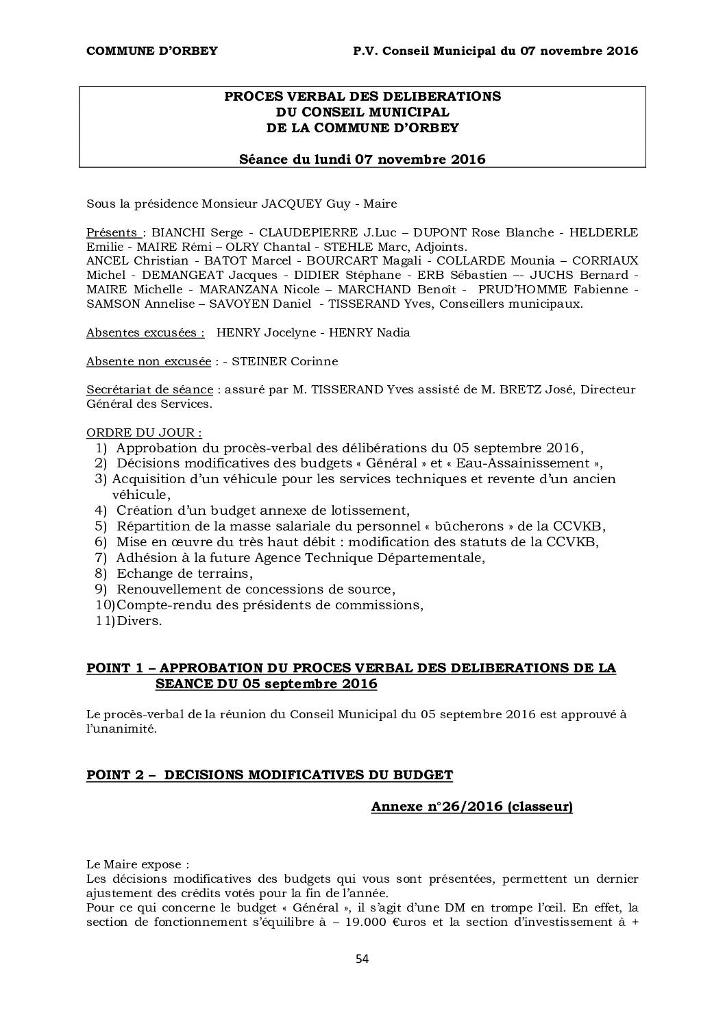 PV du Conseil Municipal du 07 novembre 2016