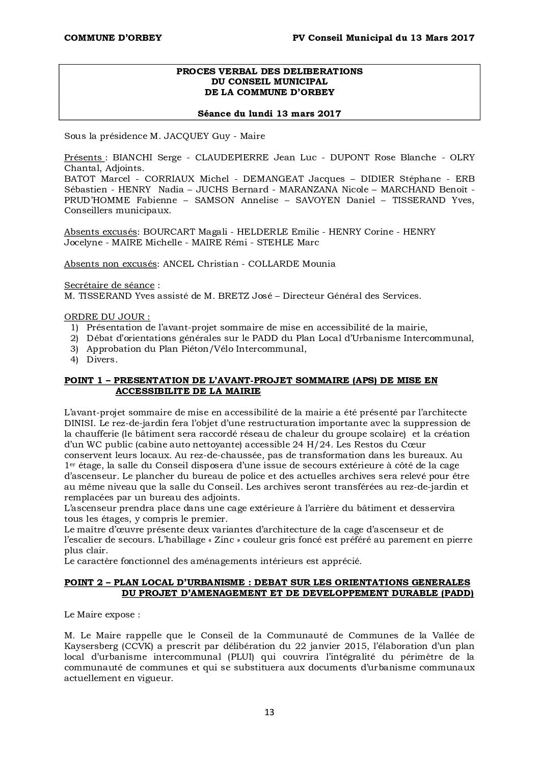 PV du Conseil Municipal du 13 mars 2017