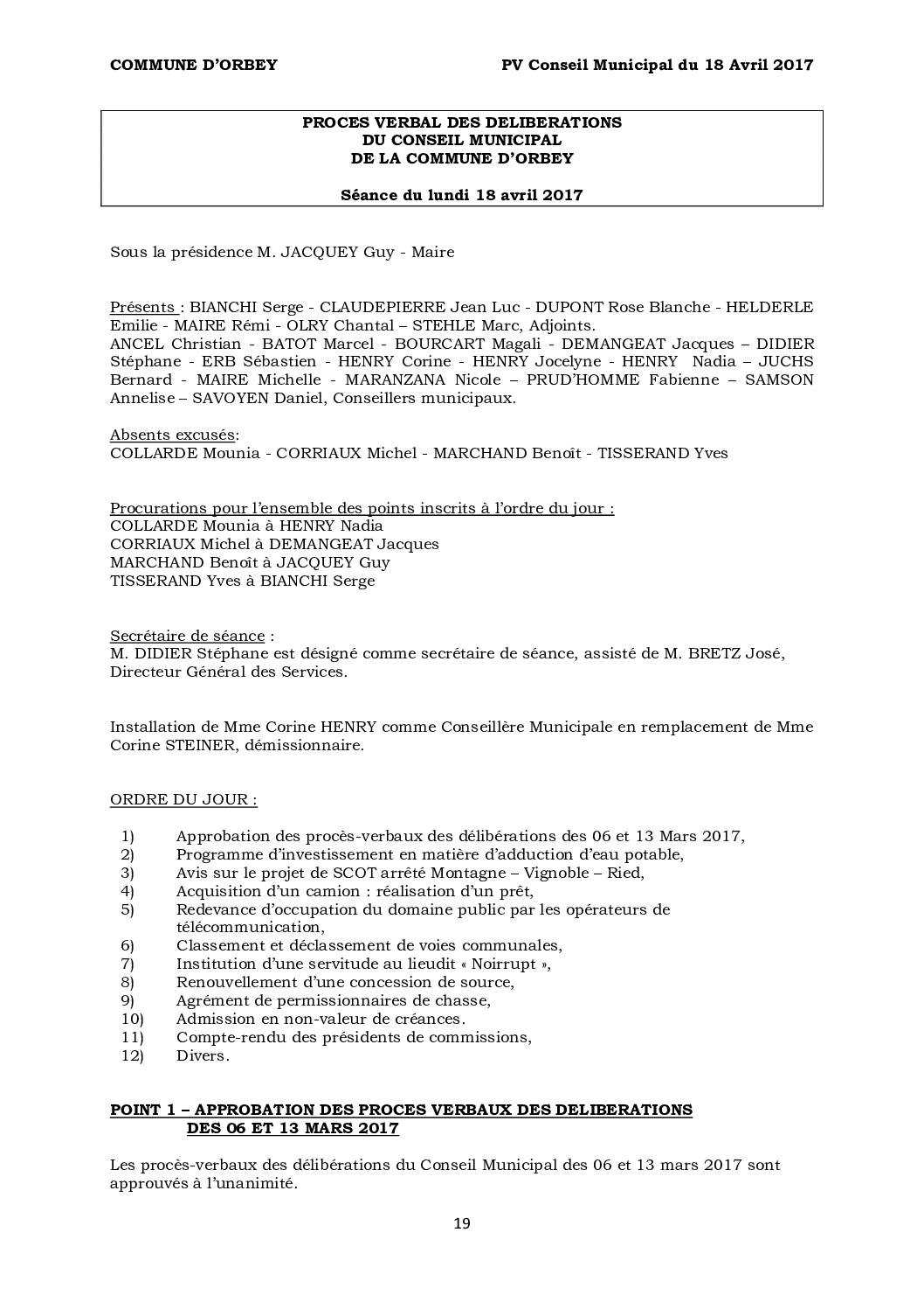 PV du Conseil Municipal du 18 avril 2017
