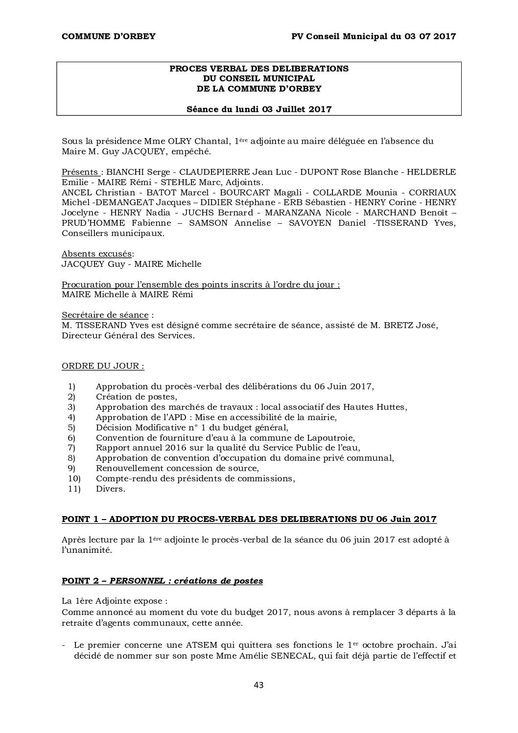 PV du Conseil Municipal du 03 juillet 2017