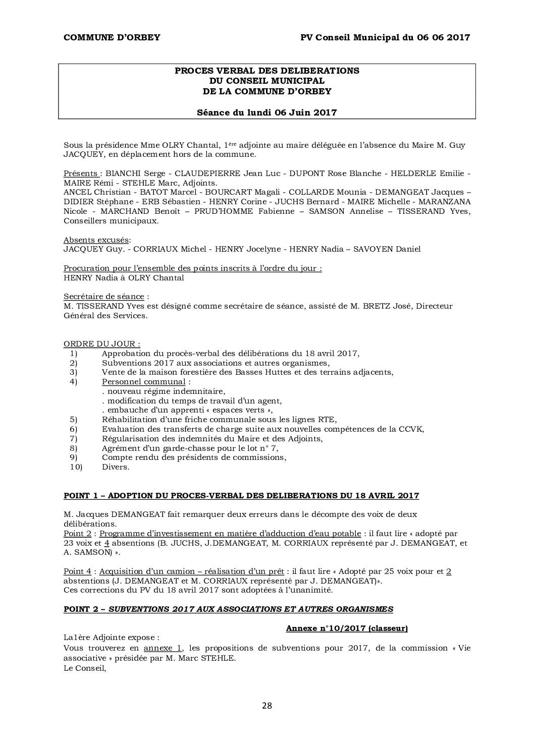 PV du Conseil Municipal du 06 juin 2017